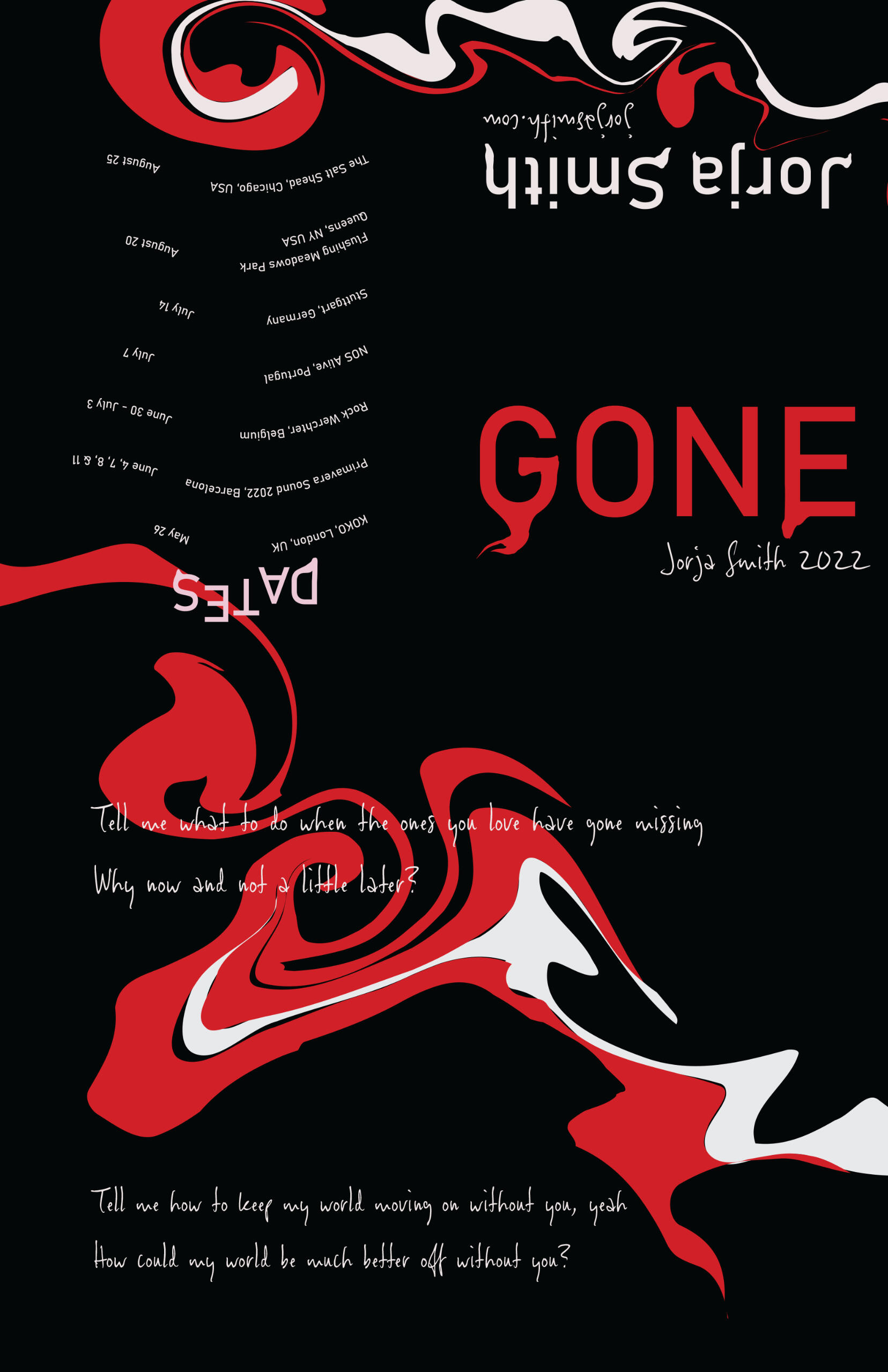 A double-sided poster that can be unfolded gradually to reveal Jorja Smith tour dates and lyrics. The poster fits into Jorja Smith’s existing brand by using the colors from her album “Be Right Back” that would be on this tour.